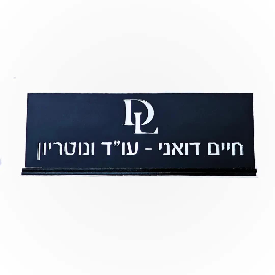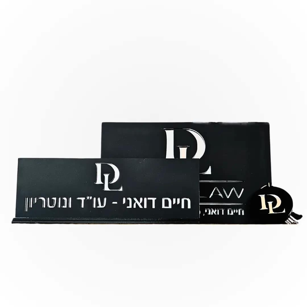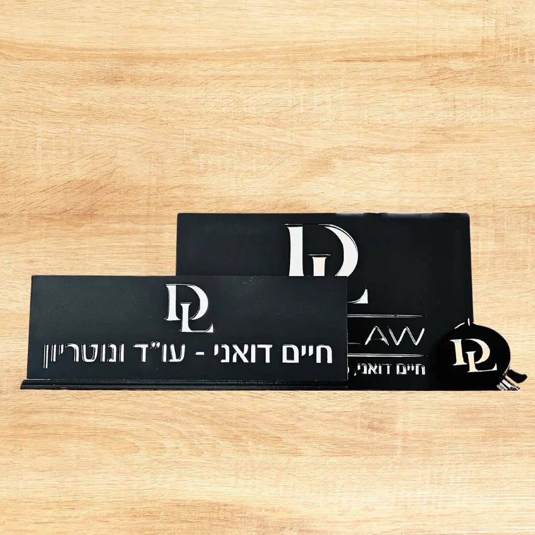 - שלט לדלת מרשים עשוי אקריליק איכותי, בהתאמה אישית, להבלטת זהות העסק כבר בכניסה.