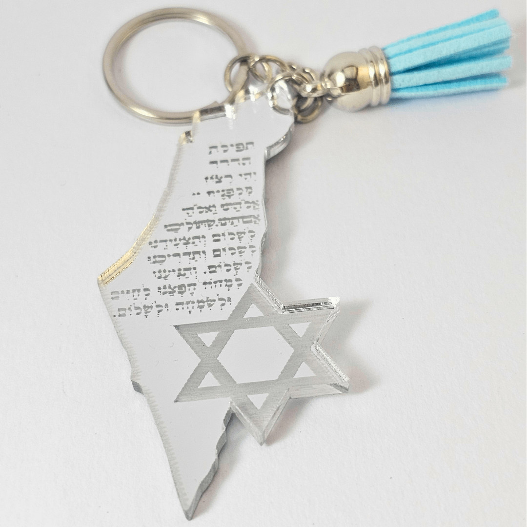 מחזיק מפתחות ייחודי עם חריטת תפילת הדרך על רקע מפת ישראל. עשוי אקריליק איכותי ועמיד, מאפשר לך לקחת את האיחולים וההגנה איתך לכל מקום. עיצוב אלגנטי, מתאים למתנה אישית, מתנה לאורחים או שימוש יומיומי.