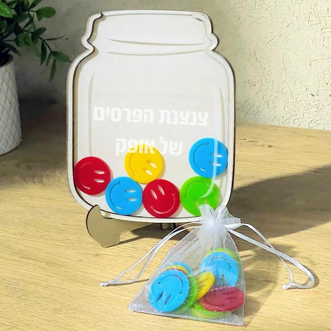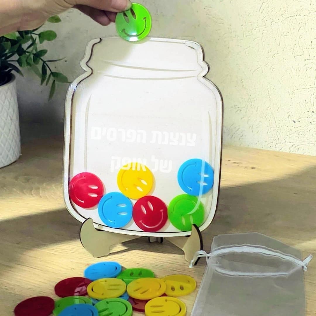 צנצנת פרסים אישית מעץ ואקריליק – עם שם הילד/ה!