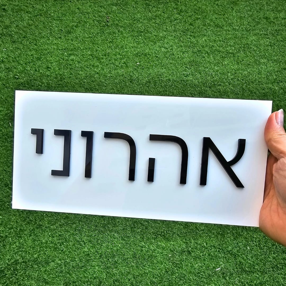 שלט אקריליק דגם קלאסיק לדלת כניסה בעיצוב יוקרתי עם כיתוב בהתאמה אישית בעברית או באנגלית.